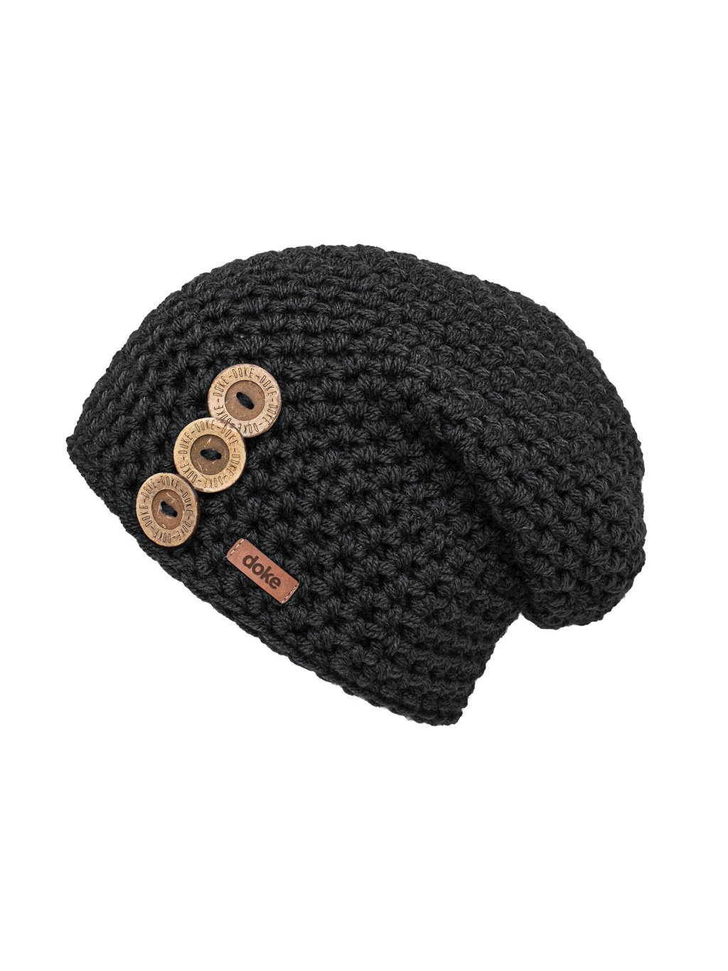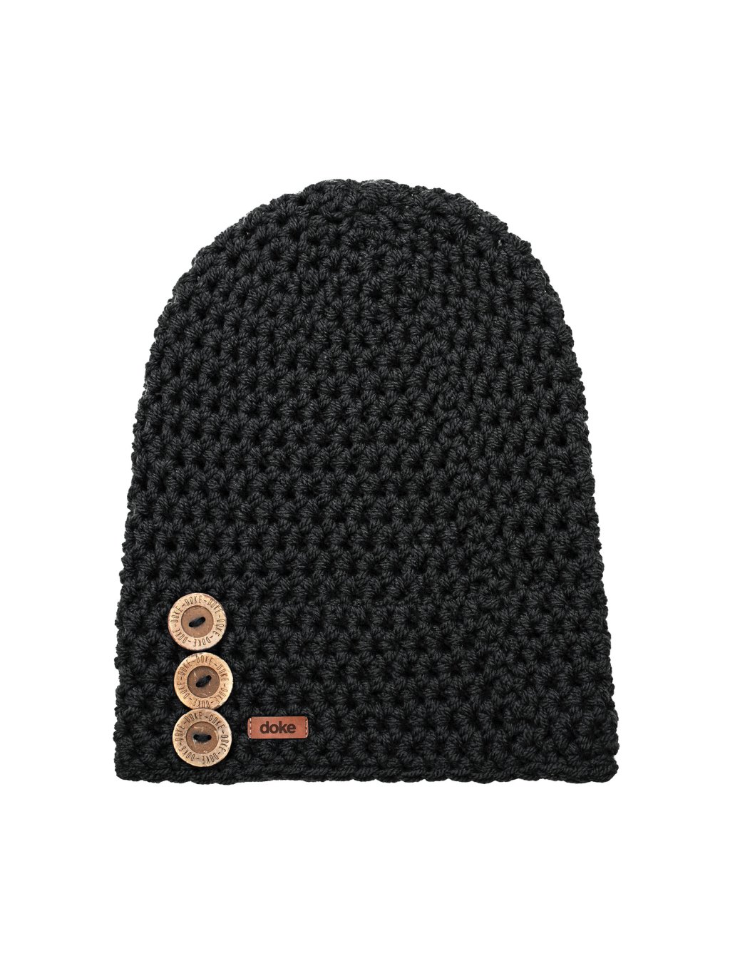 Ručně háčkovaná čepice podšita funkčním úpletem Thermocool, je doplněna barevnými knoflíky.