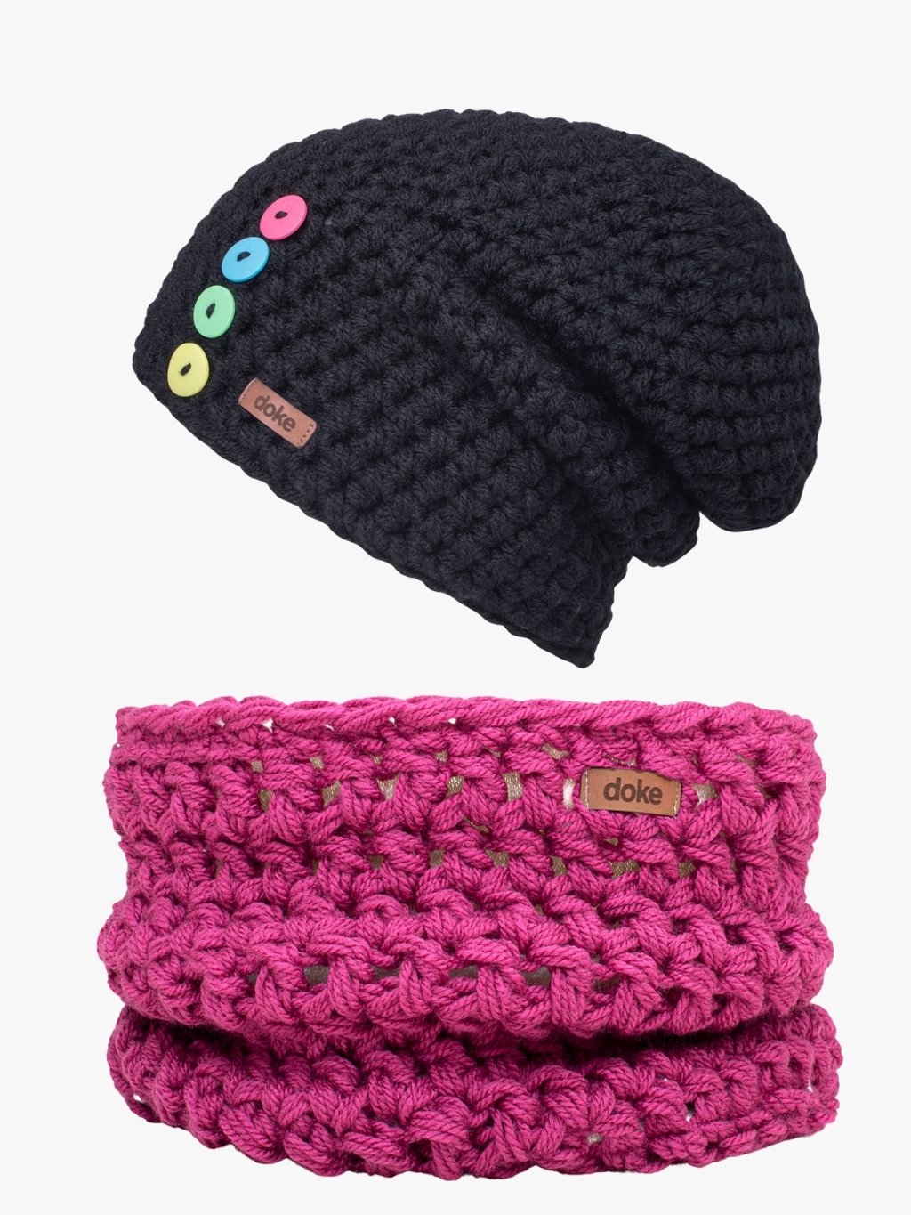 Ručně háčkovaná čepice s nákrčníkem z hřejivé příze. Čepice je podšitá 10cm pruhem funkčního úpletu. Při sportu podrží a při lumpárnách vydrží. Každý kousek je originál, který prošel rukama našich šikovných pletařek. Čepice Doke jsou ryze české, háčkované a pletené s láskou v Jeseníku.
