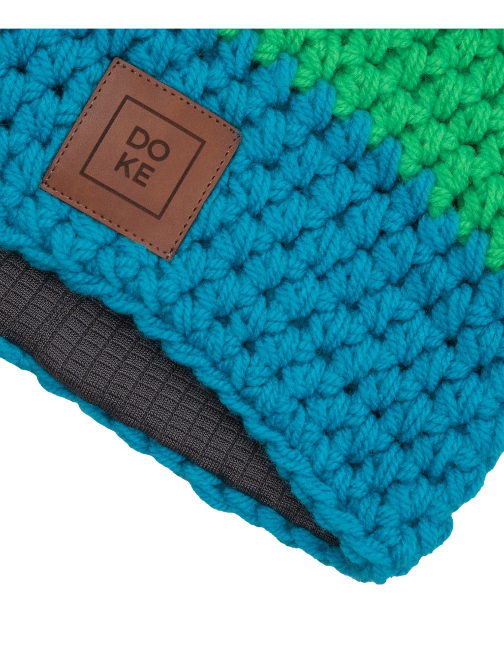 Ručně háčkovaná čepice s nákrčníkem z hřejivé příze. Čepice je podšitá 10cm pruhem funkčního úpletu. Při sportu podrží a při lumpárnách vydrží. Každý kousek je originál, který prošel rukama našich šikovných pletařek. Čepice Doke jsou ryze české, háčkované a pletené s láskou v Jeseníku.