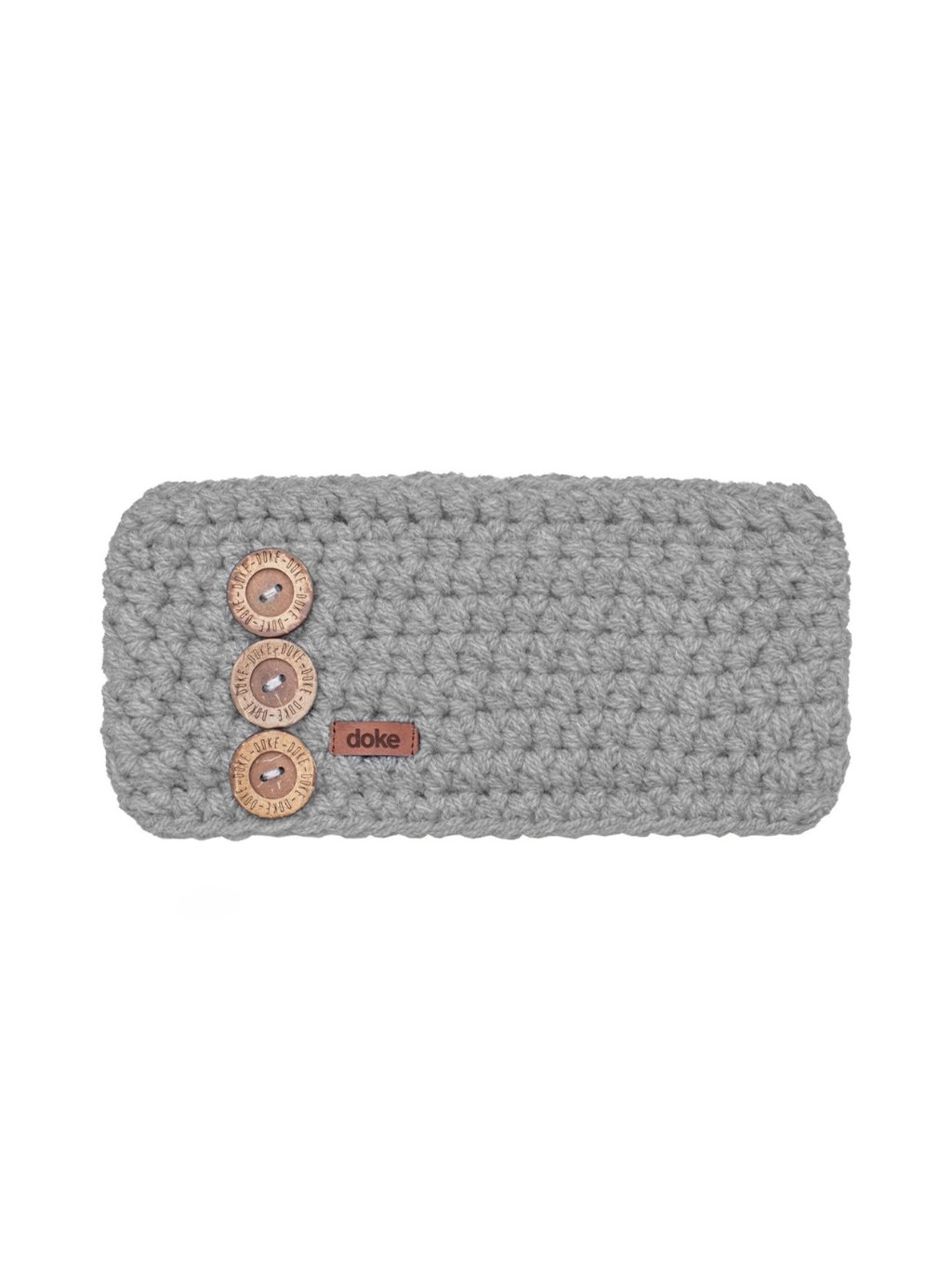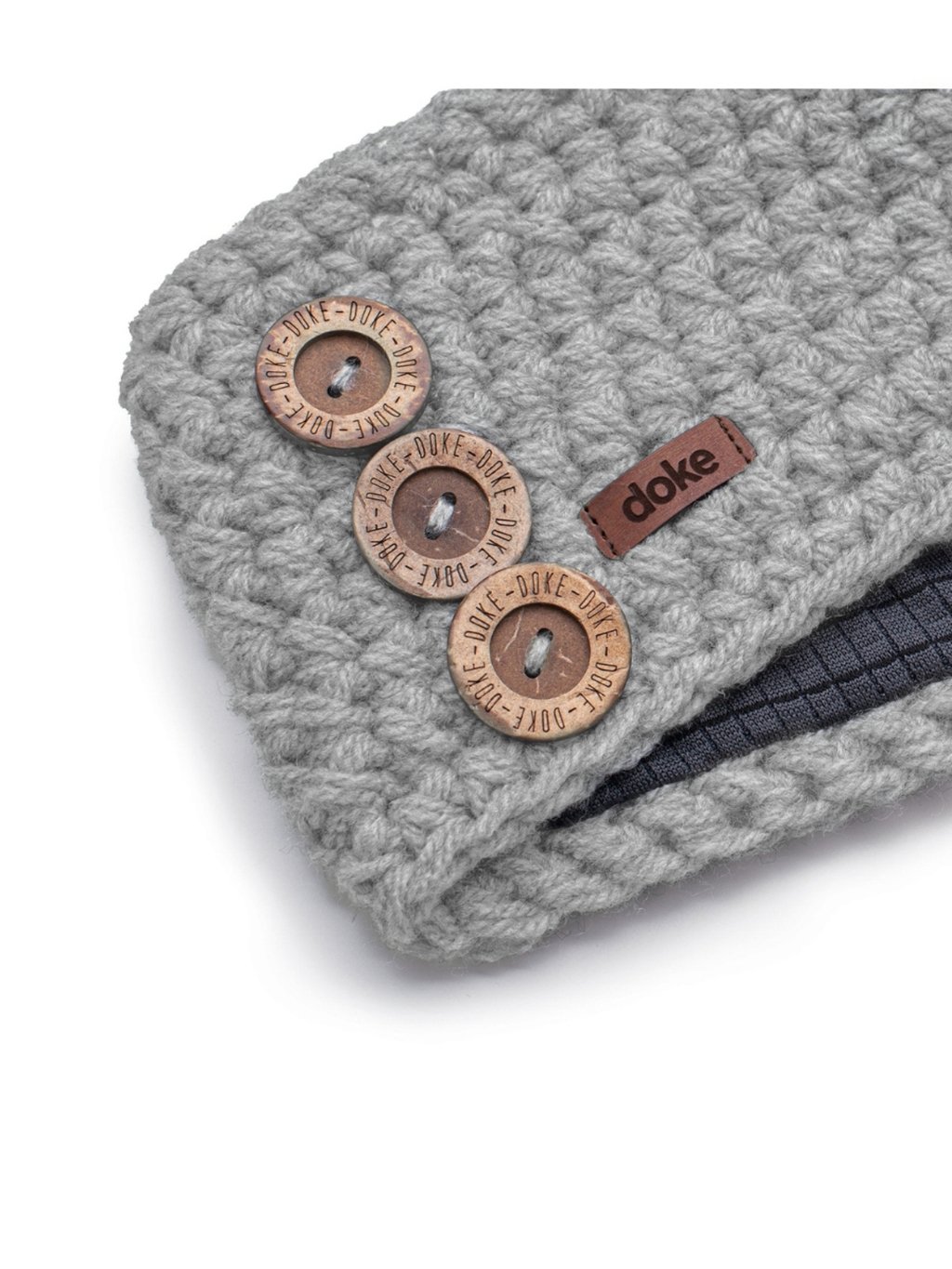 Háčkovaná čelenka je vyrobena z příjemné a hřejivé příze, podšitá funkčním úpletem. Je doplněna dřevěnými knoflíky s logem. Doke je ryze česká výroba z jesenických hor.
