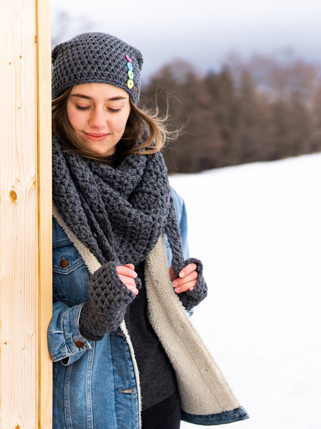 Stylový set, který ve dnech urputných mrazů zahřeje a navíc vyladí každý Váš outfit . Ručně háčkovaná čepice z hřejivé příze je podšitá 10cm pruhem funkčního úpletu, doplněna originálními knoflíky s logem. Kombinovat můžete do setu s šálou a/nebo rukavicemi. Doke je ryze česká výroba z jesenických hor.