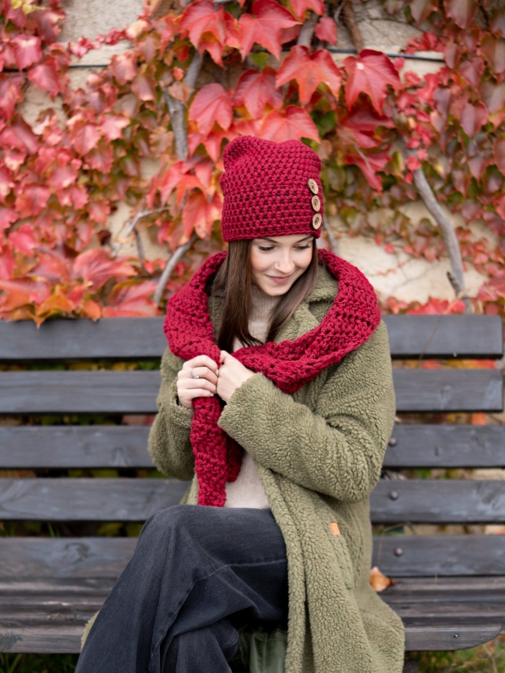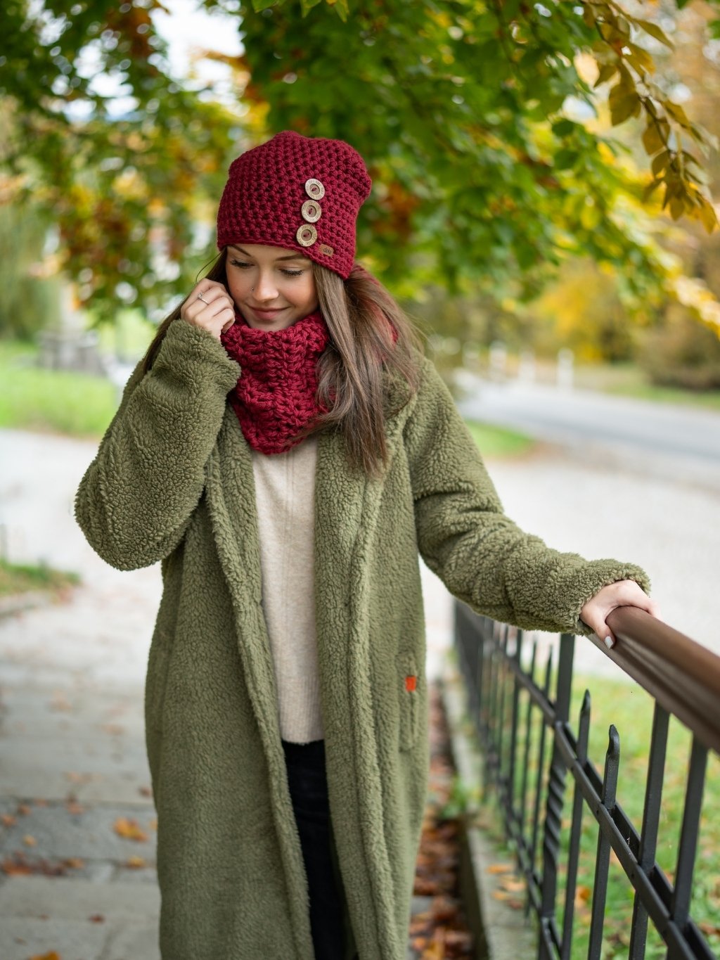 Set háčkovaná čepice B nature bordo