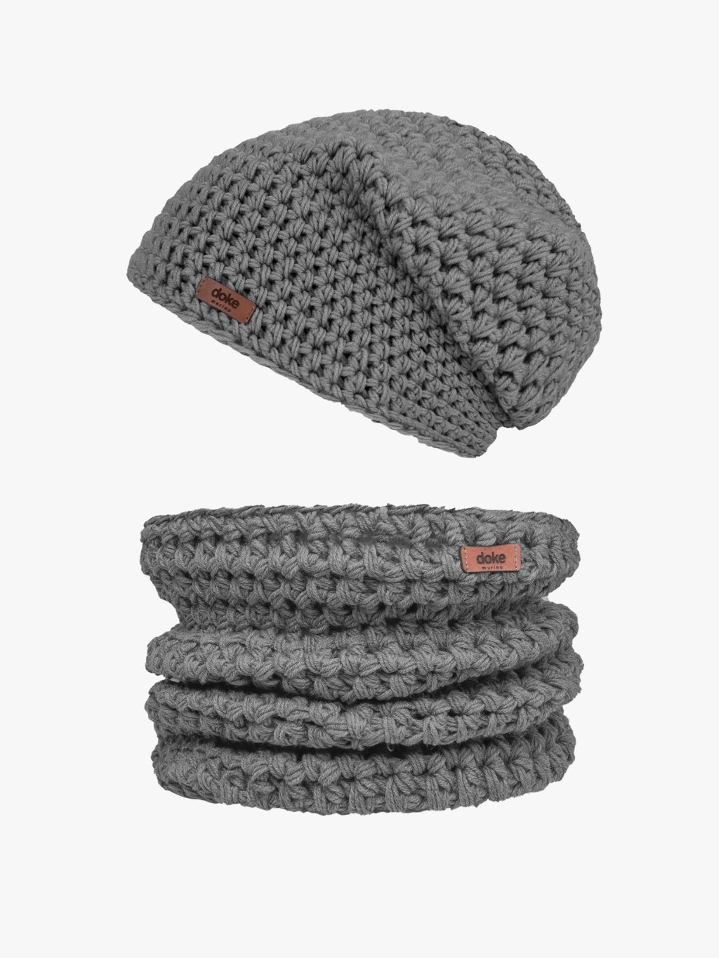 Set merino háčkovaná čepice medium grey a nákrčník grey L