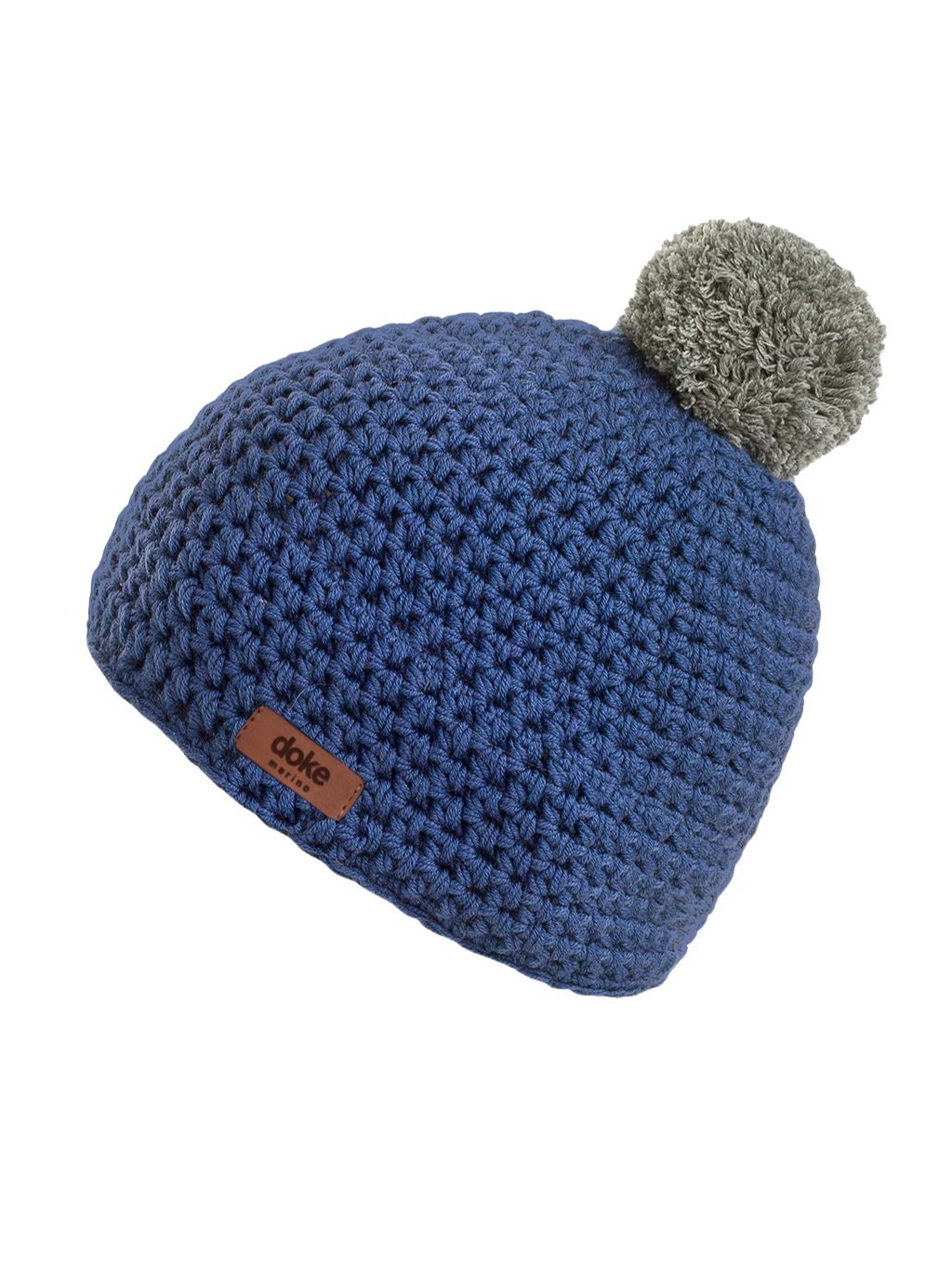 Set merino háčkovaný kulich kobalt a nákrčník medium grey