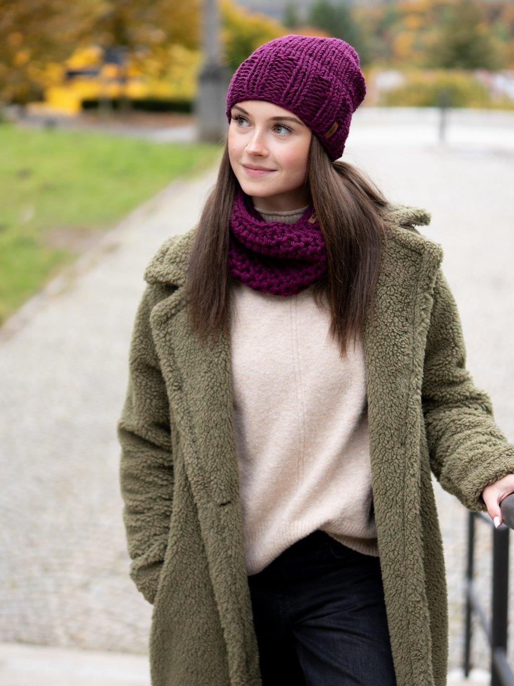 🧵 Nákrčník je háčkovaný ze stejné příze a tvoří s čepicí dokonalý komplet. Oproti šále se snadno obléká, dobře drží tvar a spolehlivě zahřeje krk.