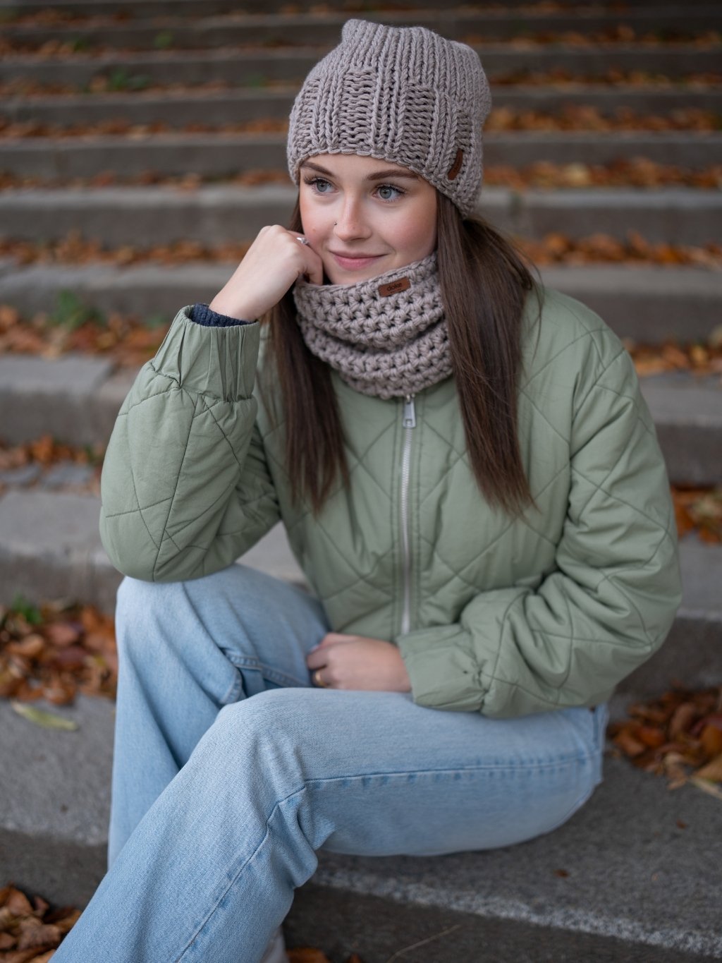 Spojení stylu, pohodlí a přírodních materiálů. Tento ručně vyrobený set kombinuje minimalistický vzhled, funkčnost a teplo, které v chladných dnech ocení každý.