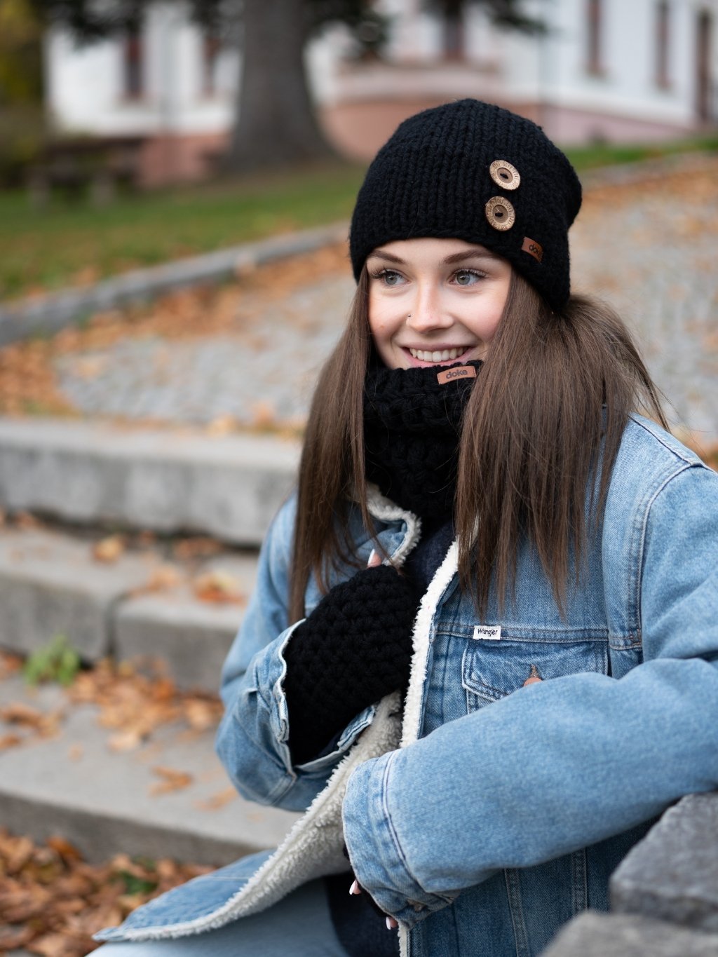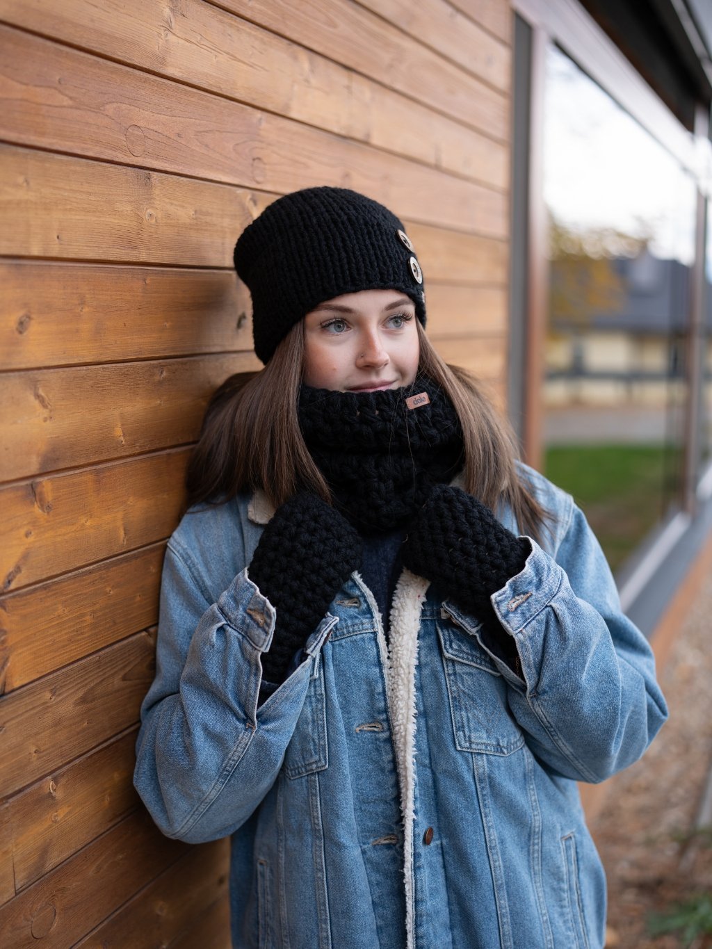 Set pletená čepice B nature black a nákrčník black